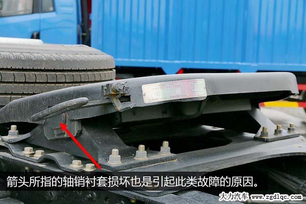 另外牽引鞍座本身上下部分的結(jié)合點(diǎn)也需要觀察,因?yàn)榘白纳舷虏糠质强恳粋(gè)軸銷(xiāo)來(lái)固定的,軸銷(xiāo)外有軸套,一般是橡膠或者尼龍材質(zhì)制造的,如果軸套損壞也非常容易出現(xiàn)竄動(dòng)量大導(dǎo)致有沖擊感。