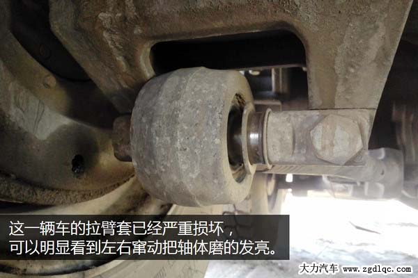 如果大家的雙驅(qū)動(dòng)車(chē)型(不管是牽引車(chē)、載貨車(chē)自卸車(chē))出現(xiàn)了此類(lèi)故障應(yīng)該首先檢查拉臂套的狀態(tài)(需要鉆到車(chē)底下,不要怕臟),如果出現(xiàn)了明顯的損壞跡象應(yīng)該立即更換。