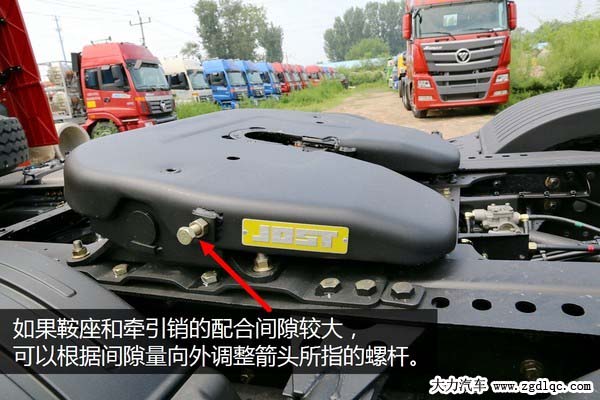 如果斷定牽引鞍座相對(duì)掛車(chē)有較大的間隙那該怎么辦呢?不用著急,這個(gè)毛病一般都很好處理,牽引鞍座左側(cè)有一個(gè)可以調(diào)整的螺桿,但一般人都不知道它是干什么用的,其實(shí)它就是調(diào)節(jié)牽引鞍座工作間隙的裝置,向內(nèi)擰螺桿間隙變大,向外擰間隙變小,大家可以根據(jù)自己車(chē)輛牽引盤(pán)的間隙進(jìn)行適當(dāng)?shù)恼{(diào)整,但要千萬(wàn)記住調(diào)整后鎖緊螺母。如果是牽引盤(pán)上下鉸接部分的軸套間隙大了就只能拆解進(jìn)行軸套和軸銷(xiāo)更換維修了,但此類(lèi)配件一般都比較便宜,維修成本不高。