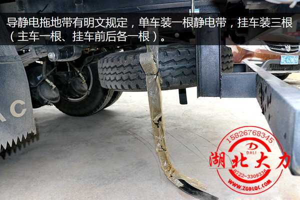 國家對危運(yùn)車輛使用的導(dǎo)靜電拖地帶有明文規(guī)定,單車必須裝一根靜電帶,掛車裝三根(主車一根、掛車前后各一根),并要求所有的靜電帶空、重車和停駛都必須拖地。特別提醒:如果車身或車廂較長、較寬可根據(jù)實(shí)際需要多安裝一條或幾條導(dǎo)靜電拖地帶。