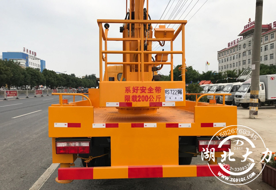 東風(fēng)大多利卡空作業(yè)車依客戶要求可定制18米三節(jié)折疊式作業(yè)臂,大力高空作業(yè)車采用前后H型四液壓支腿,轉(zhuǎn)臺(tái)、工作斗雙工位操作雙工位操作,可360°旋轉(zhuǎn)、工作斗額定載質(zhì)量200公斤,配置1噸吊鉤,貨箱式平臺(tái)。