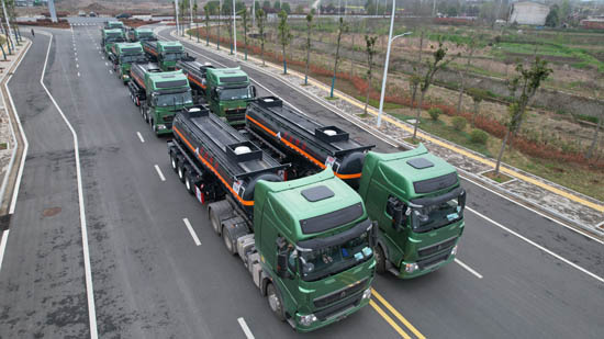 湖北大力汽車(chē)公司批量化工運(yùn)輸車(chē)發(fā)車(chē)