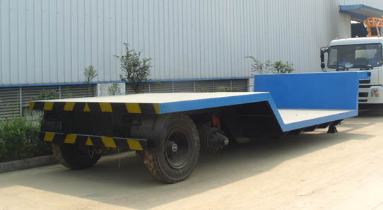 平板半掛車(chē) 載貨部位的地板為平板結(jié)構(gòu)且無(wú)欄板的半掛車(chē)