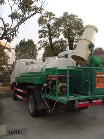 綠化多功能噴藥車采用新的風(fēng)進(jìn)噴霧方式,裝配噴藥專用柴油機(jī)組,為噴藥提供專一動(dòng)力來(lái)源。風(fēng)機(jī)安裝可360°調(diào)整的直流噴嘴兩只,沖洗寬度可達(dá)到25米以上,調(diào)整角度后,還可對(duì)道路面旁的高大樹(shù)木進(jìn)行沖洗;裝有兩只可噴淋后灑裝置,主要對(duì)垃圾場(chǎng)道路進(jìn)行保潔和壓塵,灑水寬度可達(dá)18米以上;高射槍的射程可達(dá)30米以上,可調(diào)節(jié)成霧狀或柱狀進(jìn)行噴灑。