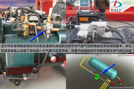基于以上原因,在變速箱上法士特是提供一個(gè)減壓閥,來(lái)實(shí)現(xiàn)變速箱氣路的整體穩(wěn)定性,如果整車(chē)氣源中單獨(dú)有一個(gè)恒定氣壓的獨(dú)立氣源給此系統(tǒng)供氣,那么可以有著很好的效果。