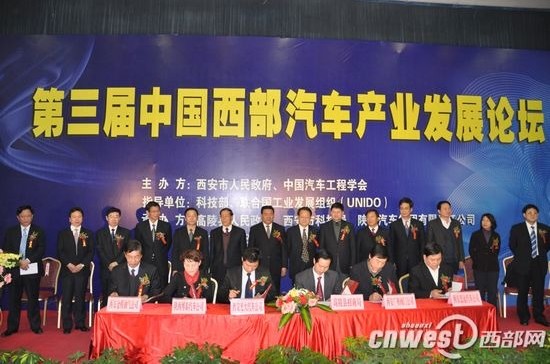 4月8日,作為第十五屆西洽會(huì)的重要活動(dòng)之一,“2011第三屆中國(guó)西部汽車產(chǎn)業(yè)發(fā)展論壇暨高陵縣招商項(xiàng)目集中簽約儀式”在西安隆重舉行,來(lái)自全國(guó)各地的行業(yè)精英和專家學(xué)者同聚曲江賓館,共商西部汽車產(chǎn)業(yè)發(fā)展大計(jì)。會(huì)上,中國(guó)西部重卡之城高陵縣為中國(guó)西部汽車零部件基地引進(jìn)汽配企業(yè)14家,合同總投資近60億元。