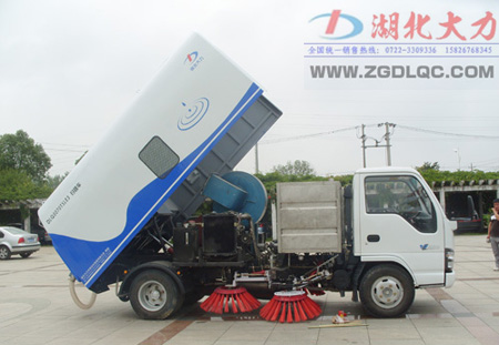 DLQ5070TSLE3 型掃路車采用慶鈴NKR77LLNACJAY 型二類汽車底盤改裝,加裝動力系統(tǒng)、風(fēng)機傳動系統(tǒng)、灑水系統(tǒng)、液壓系統(tǒng)、電氣系統(tǒng)、清掃作業(yè)裝置、副車架、垃圾箱等改裝而成,排放達到歐Ⅲ標(biāo)準(zhǔn)。其主要配套件:主、副發(fā)動機均為基于五十鈴技術(shù)的柴油發(fā)動機、寧波中意擺線馬達、中法合資的電控元件等;垃圾箱的傾翻、垃圾箱后門的開和關(guān)、掃盤的旋轉(zhuǎn)、吸嘴的升降均采用液壓傳動,電、液集中控制;主要液壓元件采用優(yōu)質(zhì)進口件,整機性能良好、可靠。該車采用以吸為主、吸掃結(jié)合、濕式除塵的工作原理對路面進行清掃作業(yè),具有清掃效率高,二次污染小,維修方便快捷等特點,是城市道路、高速公路、機場、碼頭等地面理想的清掃、保潔作業(yè)設(shè)備,具備地面清掃、深坑清污等功能,是一款一機多用的設(shè)備。
