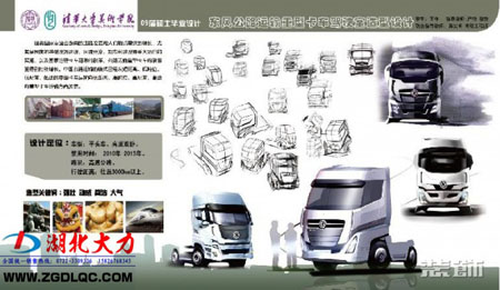 我們在論壇看到一組東風(fēng)的概念卡車,其中還有幾張油泥模型。依然能夠看到東風(fēng)天龍的影子,后來從網(wǎng)上查證,這只是清華大學(xué)美術(shù)學(xué)院09年畢業(yè)的工業(yè)設(shè)計(jì)系一名研究生作品,不知道這會不會是D760車型的雛形。