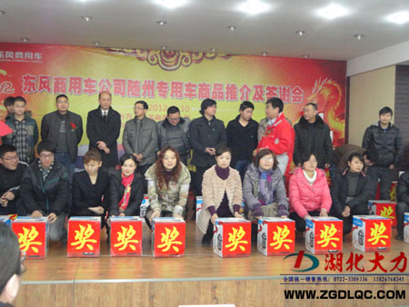 一元復始,萬象更新。一年一度的東風商用車新年答謝會暨2012年新品推介會今日在歷史文化名城隨州隆重召開。來自隨州市曾都區(qū)區(qū)政府、東風商用車市場銷售總部、湖北商務代表處、隨州各大改裝經銷企業(yè)以及駐全國市場銷售人員近800名代表出席會議。這次會議由東風商用車湖北商務代表處和湖北圓通聯(lián)合主辦,會議采取團拜、產品宣講、頒獎和抽獎相結合的方式展開。大會向湖北大力尚傳書等2名代表頒發(fā)優(yōu)秀業(yè)務一等獎,向湖北成龍威劉永財?shù)?名代表頒發(fā)優(yōu)秀業(yè)務二等獎,向湖北程力公司程阿羅等10名代表頒發(fā)優(yōu)秀業(yè)務三等獎,同時通過大屏幕現(xiàn)場抽出60名幸運獎。