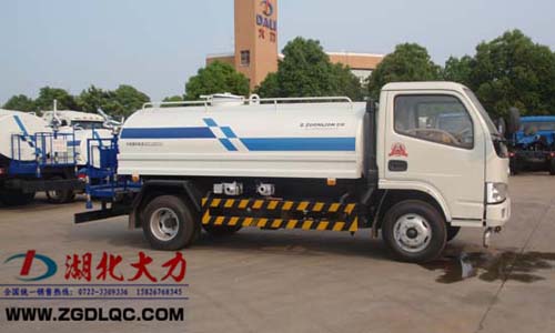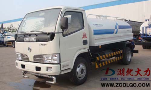 底盤(pán)采用東風(fēng)福瑞卡EQ1040TJ20D3型底盤(pán),罐體容積5立方,橢圓罐方管道箱,按中聯(lián)中科樣式制作,罐體采用4mm碳鋼板制作,前封帶水位顯示計(jì),前沖后灑,側(cè)噴,后工作平臺(tái)帶高炮,帶消防栓,隨州億豐灑水泵。