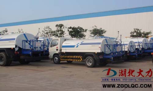 灑水車同時(shí)具有運(yùn)水功能,若運(yùn)飲用水,罐體內(nèi)需做防腐油漆,灑水車泵可起到吸水和加壓排功能,也可不通過(guò)泵排水。灑水車可做噴藥車使用,噴藥車罐體需做防腐處理,選裝藥盤(pán)及打藥機(jī)。