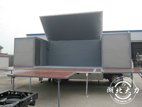 商品展銷(xiāo)車(chē),選用福田底盤(pán),3360軸距,整車(chē)長(zhǎng)約5.995米,上藍(lán)牌,C照可以開(kāi),舞臺(tái)面積18-24平方;為了滿(mǎn)足不同需求的用戶(hù),駕駛室有兩種配置,一種經(jīng)濟(jì)實(shí)惠的窄體駕駛室,另一種是豪華大氣的寬體駕駛室,可以選裝方向助力和空調(diào);側(cè)面展開(kāi)舞臺(tái)面積在16平方左右,配有舞臺(tái)梯、燈光架、幕布掛鉤及電源箱。