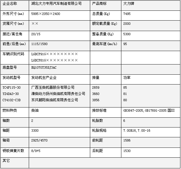 底盤(pán):EQ1070T35DJ3AC,發(fā)動(dòng)機(jī):YC4F115-30 YZ4DA3-30