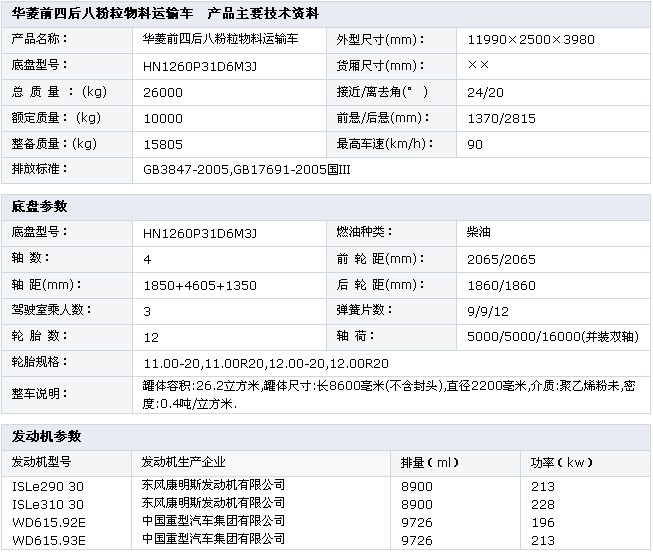 華菱前四后八粉粒物料運輸車  底盤型號:HN1260P31D6M3J 額定質量:10000