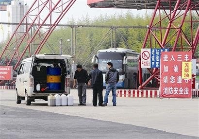 昨日中午,記者在沌陽東風大道上的“天順加油站”看到,10多輛面包車等候加油,讓人驚訝的是,面包車全是“運油車”,車廂內(nèi)各裝著一個或兩個約500升的大油桶,等候加柴油。大油桶加到柴油的用途,多數(shù)面包車司機不愿作出解釋。一些知情司機則指出,這些人正是從加油點弄到油后,然后再高價轉(zhuǎn)賣。